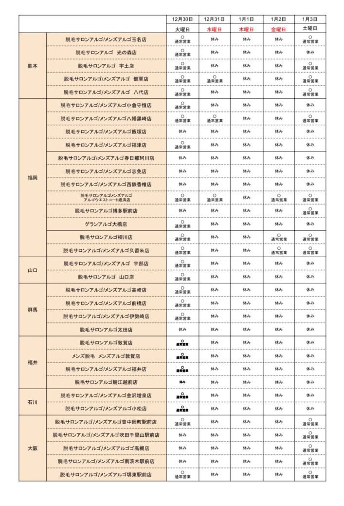 いつも脱毛サロンアルゴ/メンズアルゴ/グランアルゴをご愛顧いただきありがとうございます。