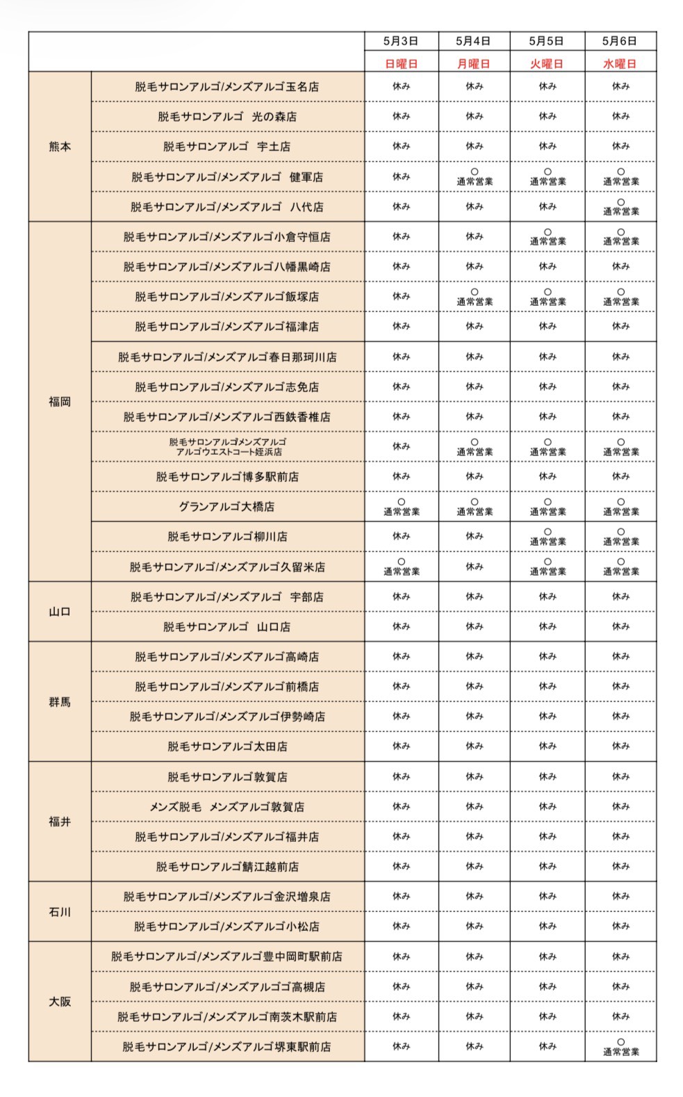 いつも脱毛サロンアルゴ/メンズアルゴ/グランアルゴをご愛顧いただきありがとうございます。
